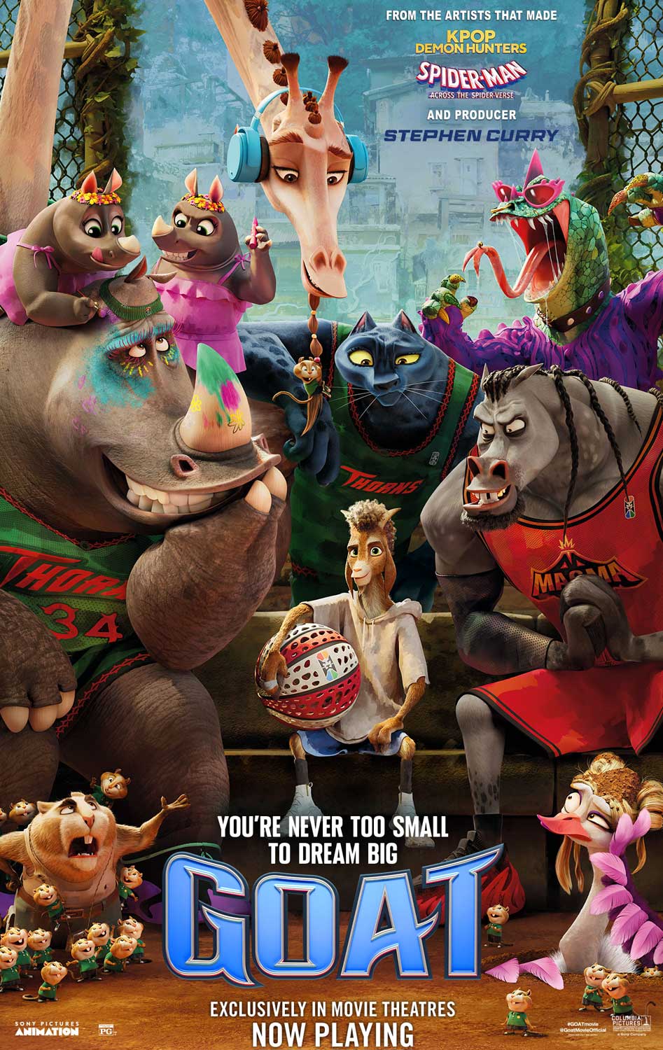 From Sony Pictures Animation, the studio behind Spider-Man: Across the Spider-Verse and the artists that made KPop Demon Hunters, comes GOAT, an original action-comedy set in an all-animal world. The story follows Will, a small goat with big dreams who gets a once-in-a-lifetime shot to join the pros and play roarball – a high-intensity, co-ed, full-contact sport dominated by the fastest, fiercest animals in the world. Will’s new teammates aren’t thrilled about having a little goat on their roster, but Will is determined to revolutionise the sport and prove once and for all that “smalls can ball!”